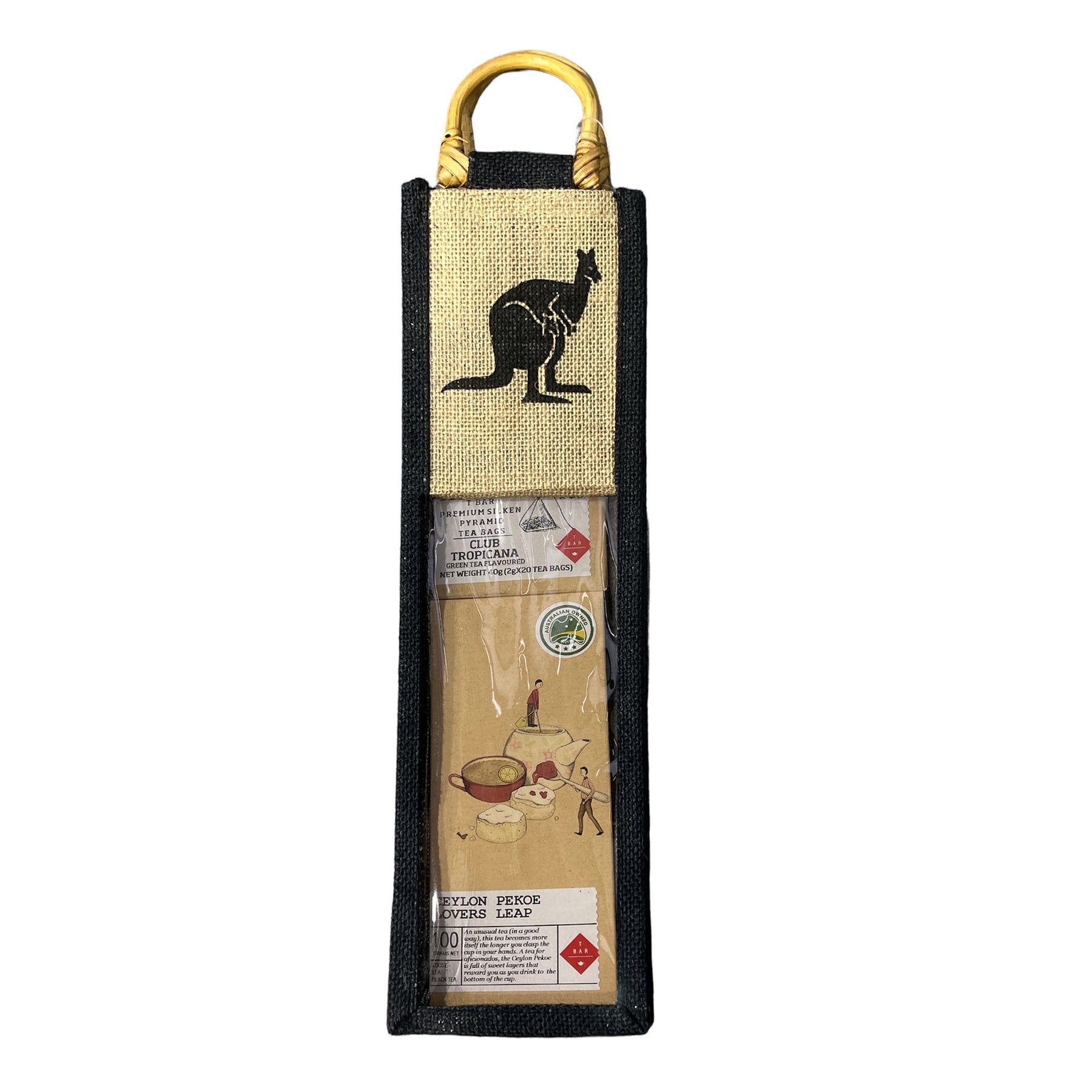 Gift/Wine Bottle Bag - Black with Kangaroo